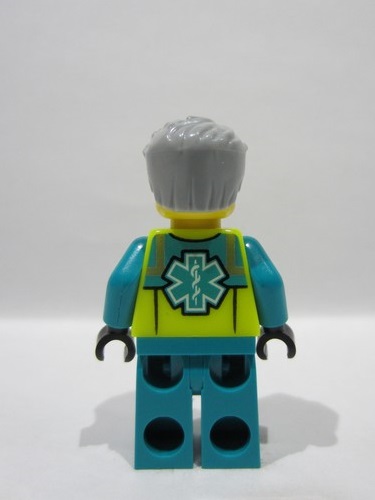 lego 2025 mini figurine cty1915 Paramedic Male, Dark Turquoise and Neon Yellow Safety Vest, Legs with Silver Reflective Stripes, Glasses, Light Bluish Gray Hair