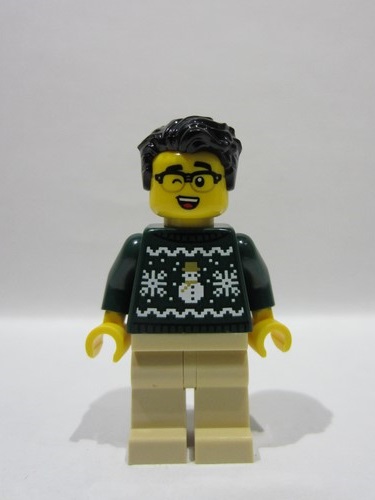 lego 2025 mini figurine cty1931 Man Dark Green Holiday Sweater, Tan Legs, Black Hair