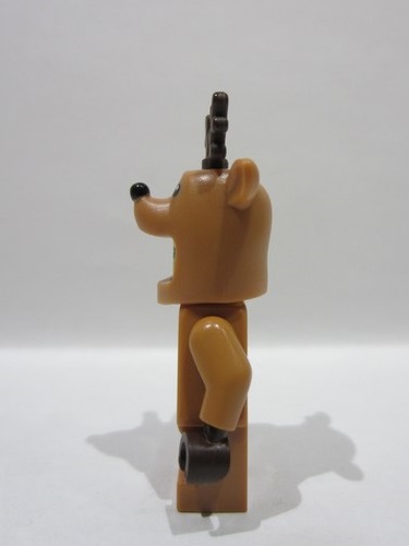 Medium Nougat Minifigure, Headgear Head Cover, Costume Reindeer, Hole on Top with Black Eyes and Nose Pattern