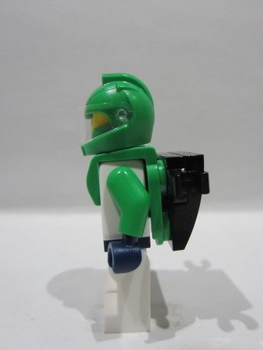 Male, White Spacesuit with Bright Green Arms, Bright Green Helmet, Trans-Clear Visor, Bright Green Harness with 2 Clips