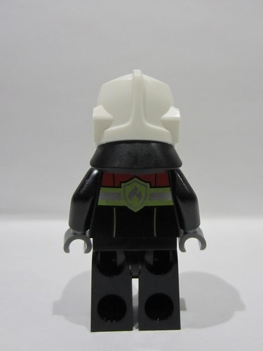 Black Torso Fire Jacket Open with Pockets, Red Collar, and Silver and Lime Reflective Stripes over White T-Shirt with Fire Logo Badge Pattern / Black Arms / Dark Bluish Gray Hands