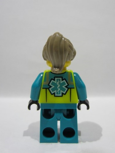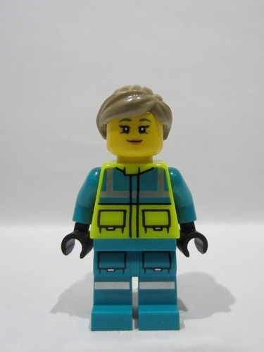 lego 2026 mini figurine cty1975 Paramedic Female, Dark Turquoise and Neon Yellow Safety Vest, Legs with Silver Reflective Stripes, Dark Tan Hair