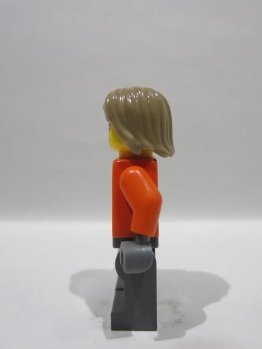 Female, Reddish Orange Racing Suit with Pockets, Dark Bluish Gray Legs, Dark Tan Tousled Hair