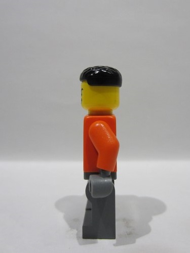 Male, Reddish Orange Racing Suit with Pockets, Dark Bluish Gray Legs, Black Hair, Scuff Mark