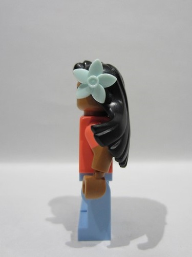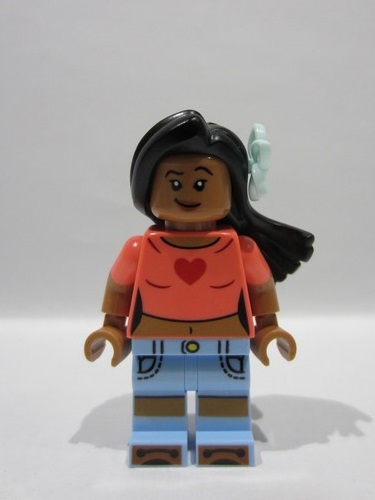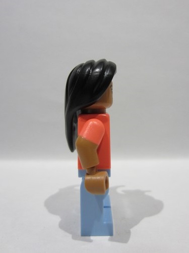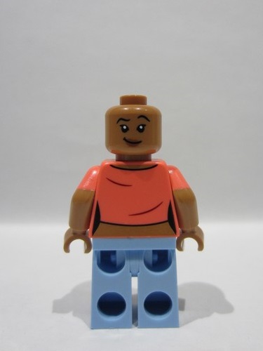 Medium Nougat Minifigure, Head Dual Sided Child Female Black Eyebrows, Single Eyelashes, Dark Orange Lips, Open Mouth Smile with Top Teeth and Coral Tongue / Lopsided Grin and Raised Eyebrow Left Pattern