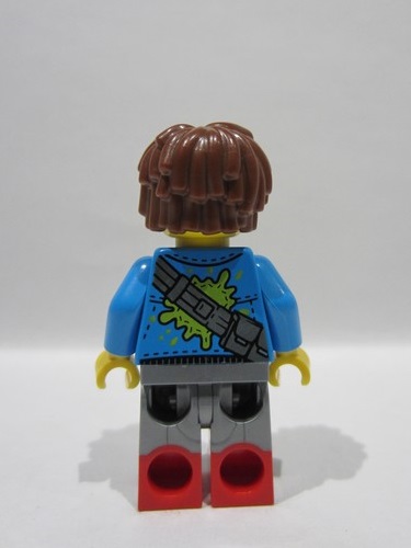 Reddish Brown Minifigure, Hair Short Layered Mop Top with Lime Streaks Pattern