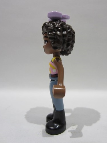 lego 2023 mini figurine frnd0621 Aliya Yellow and Bright Pink Top, Sand Blue Trousers, Black Boots, Lavender Bow
