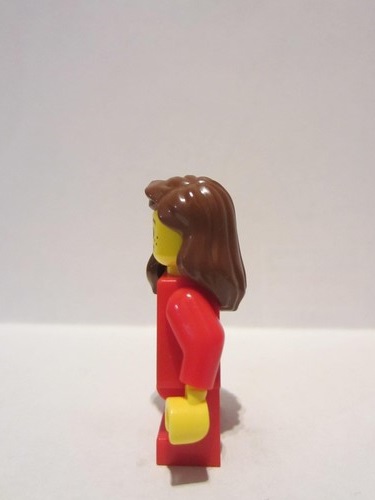 lego 2013 mini figurine hol031 Citizen Sweater Cropped with Bow, Heart Necklace, Red Short Legs, Reddish Brown Female Hair over Shoulder