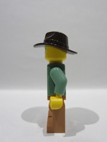 lego 2025 mini figurine hol375 Farmer Male, Medium Nougat Overalls over Sand Green Shirt, Medium Nougat Legs, Dark Brown Fedora, Sweat