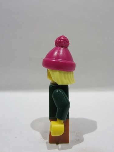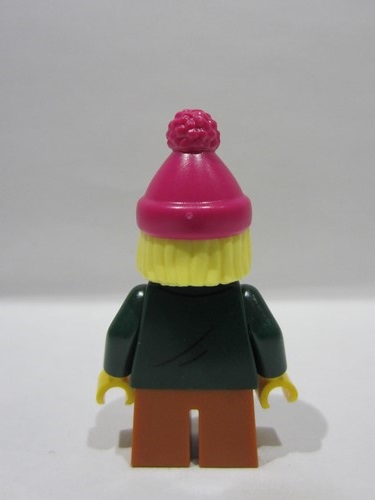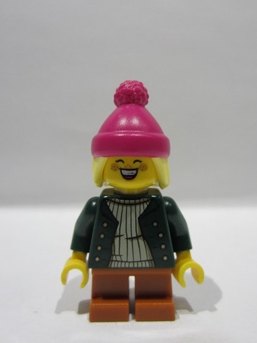 lego 2025 mini figurine hol390 Girl Magenta Beanie, Dark Green Jacket, Dark Orange Short Legs