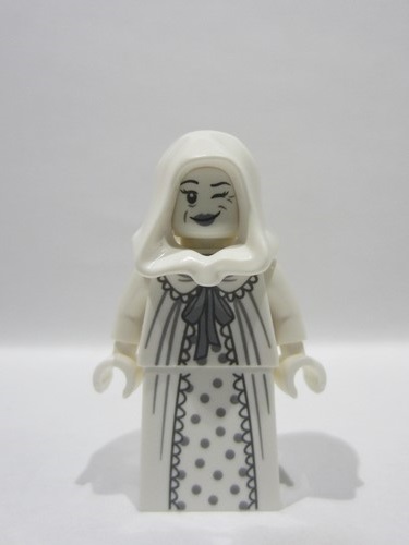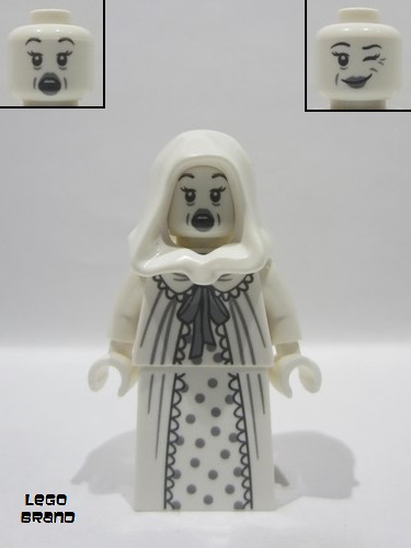 White Minifigure, Head Dual Sided Alien Ghost with Dark Bluish Gray Eyebrows, Light Bluish Gray Lips and Wrinkles, Lopsided Grin and Wink / Scared Open Mouth with Top Teeth Pattern (BAM)