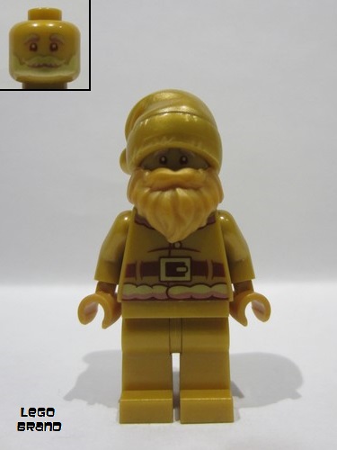 Pearl Gold Minifigure, Head Gold and Copper Bushy Eyebrows, Beard, and Moustache, Reddish Brown Eyes Pattern (BAM)