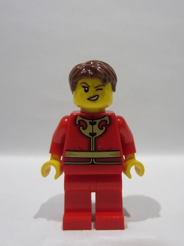 lego 2026 mini figurine hol418 Woman Red Tang Jacket with Gold Chinese Scrollwork, Red Legs, Brown Short Hair