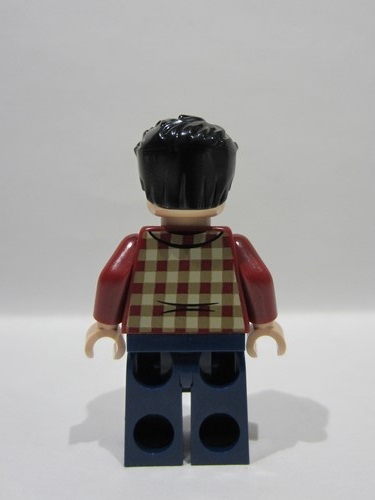 Dark Red Torso Plaid Shirt with Tan and Dark Tan Squares, Collar, and Buttons over Olive Green Shirt Pattern / Dark Red Arms / Light Nougat Hands