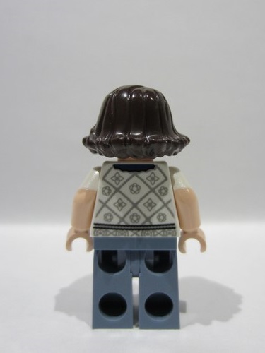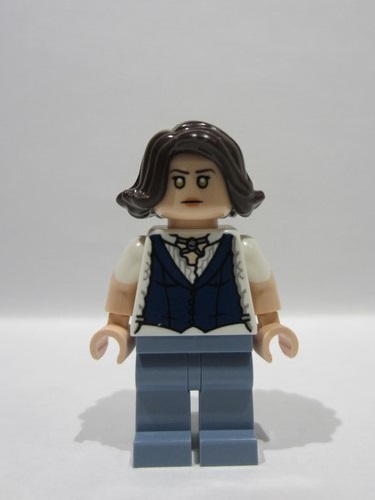White Torso Female Dark Blue Vest, White Blouse with Light Bluish Gray Squares and Flowers, Light Nougat Neck Pattern / Light Nougat Arms with Molded White Short Sleeves Pattern / Light Nougat Hands