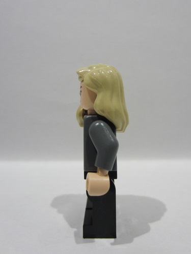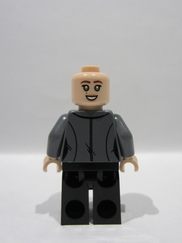 Dark Bluish Gray Torso Female Jacket Open with Pockets, Black Top, Silver Pendant Necklace, Light Nougat Neck Pattern / Dark Bluish Gray Arms / Light Nougat Hands