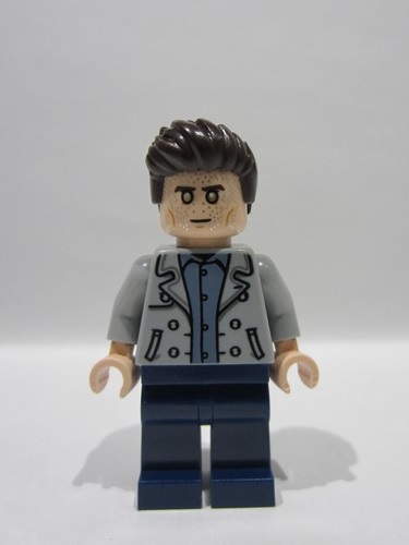 Light Bluish Gray Torso Jacket Open with Black Buttons and Pockets, Sand Blue Shirt with Collar Pattern / Light Bluish Gray Arms / Light Nougat Hands
