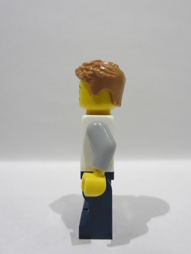 lego 2025 mini figurine idea240 Tourist White Shirt with Mountains Logo, Dark Blue Legs, Medium Nougat Tousled Hair