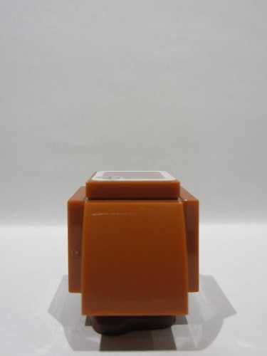 Dark Orange Tile 2 x 2 with Black Eyebrows, Dark Brown and White Eyes Looking Straight Partially Closed, Angry Frown with Bottom Fangs Pattern (Super Mario Goomba Face)