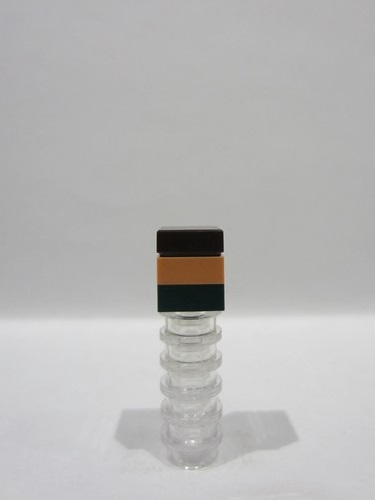 Nougat Plate 1 x 1 with Dark Purple and White Squares, Dark Orange Rectangle and Pixelated Dark Brown Smile Pattern (Minecraft Micromob Steve Face)