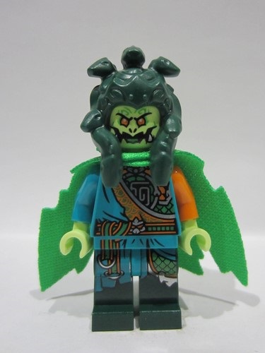 Dark Green Minifigure, Hair Entwined Snakes Long over Shoulders
