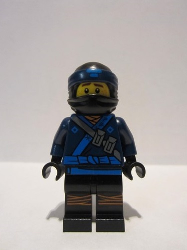 Black Minifigure, Headgear Ninjago Wrap Type 3 with Molded Dark Blue Bandana and Knot and Printed Blue Lines Symbol Pattern