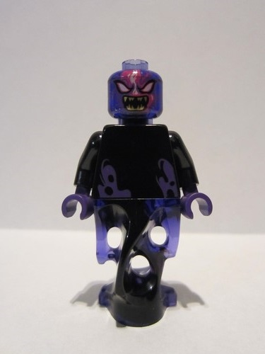 Trans-Purple Minifigure, Head Alien with White Eyes, Dark Purple and Magenta Flames, and Open Mouth with Sharp Gold Teeth Pattern