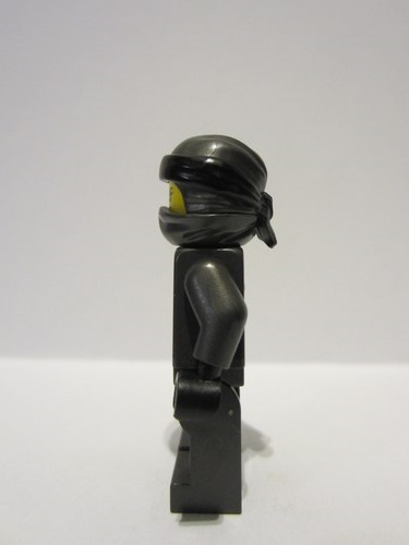 Pearl Dark Gray Minifigure, Headgear Ninjago Wrap Type 3 with Molded Black Bandana and Knot and Printed Dark Azure Ninjago Logogram Letter W Pattern