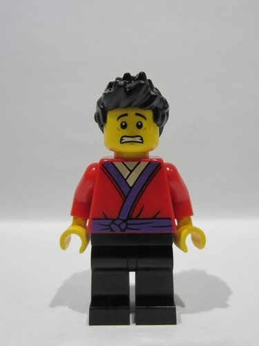 Red Torso Tunic with Dark Purple Hems and Belt, Black Trim, Tan Shirt, Gold Circle with Ninjago Logogram 'T OF S' on Back Pattern / Red Arms / Yellow Hands