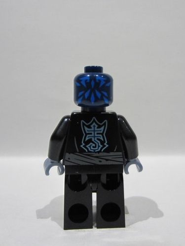 Dark Blue Minifigure, Head Alien with Black Eyebrows, Metallic Light Blue Eyes and Scar, Blue Markings, Angry Open Mouth with Fangs and Sharp Teeth Parted Pattern