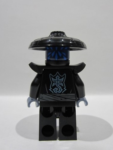 Black Hips and Legs with Dark Brown Waist Sash, Dark Bluish Gray Pants Gathers and Knee Wrappings, Metallic Light Blue Round Beads on Chain and Spikes on Toes Pattern
