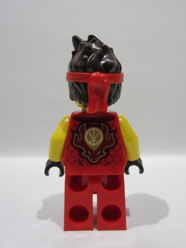Red Hips and Legs with Bright Light Yellow Sash, Ninjago Logogram Letter K in Circle, Dark Red Robe Ends with Gold Trim, Knee Pads and Toes Pattern