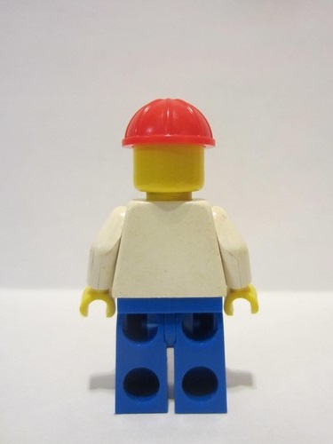 lego 1985 mini figurine ovr001 Citizen Overalls Blue with Pocket, Blue Legs, Red Construction Helmet
