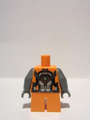 Orange Torso Spacesuit with Brown and Orange Straps and Green Light on Reverse Pattern / Dark Bluish Gray Arms / Dark Bluish Gray Hands
