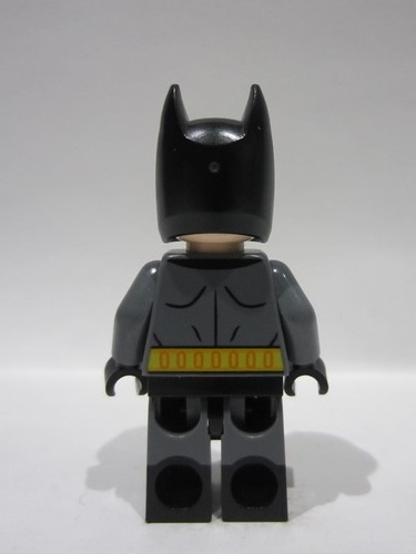 Dark Bluish Gray Torso Super Hero Costume with Batman Logo and Black Collar, Yellow and Bright Light Orange Belt with Orange Ovals, Muscles Outline Pattern / Dark Bluish Gray Arms / Black Hands