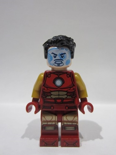 lego 2024 mini figurine sh0981 Iron Man Dark Red and Gold Armor, Round Arc Reactor, Pearl Gold Arms, Hair