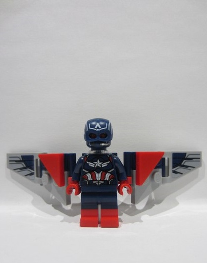 lego 2024 mini figurine sh1003s Captain America Sam Wilson - Dark Blue Suit, Backpack and Wings with Stickers