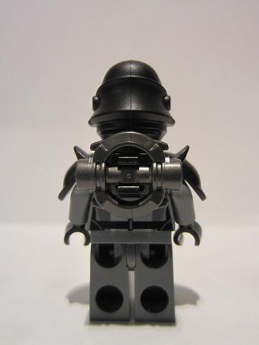 Dark Bluish Gray Torso SW Black Armor Plates with Silver and Red Stripes Pattern (Inquisitor) / Dark Bluish Gray Arms / Black Hands