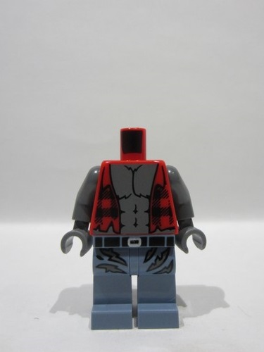 Red Torso Torn Flannel Shirt Open, Black Plaid, Dark Bluish Gray Bare Chest with Fur and Muscles Outline Pattern / Dark Bluish Gray Arms / Dark Bluish Gray Hands
