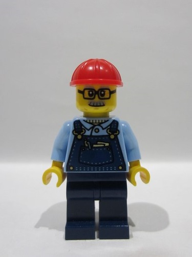 lego 2026 mini figurine twn535 Shopping Street Plumber Male, Bright Light Blue Shirt, Dark Blue Overalls and Legs, Red Construction Helmet