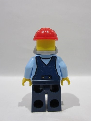 Male, Bright Light Blue Shirt, Dark Blue Overalls and Legs, Red Construction Helmet