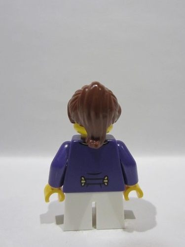 lego 2026 mini figurine twn536 Shopping Street Child Girl, Dark Purple Marching Band Jacket, White Short Legs, Reddish Brown Hair