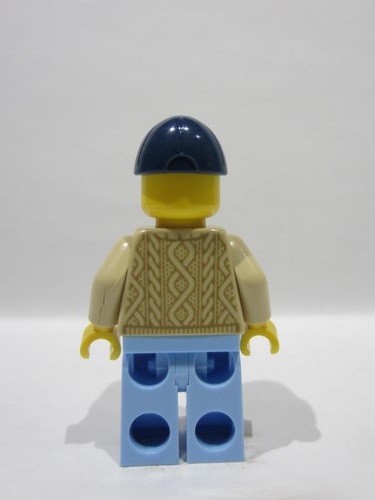 lego 2026 mini figurine twn538 Shopping Street Furniture Mover Male, Tan Sweater, Bright Light Blue Legs, Dark Blue Cap