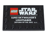 Black Tile, Modified 4 x 6 with Studs on Edges with Bright Light Blue and Medium Blue R2-D2 Minifigure and Silver '25 YEARS OF LEGO STAR WARS' Pattern