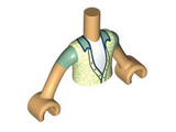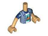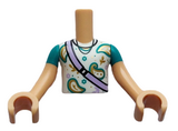Medium Tan Torso Mini Doll Boy Coral Hoodie, Bright Pink and White Panels, Dark Orange Cat Head Badge Pattern, Medium Tan Arms with Hands with Coral Long Sleeves