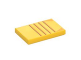 Yellow Tile 2 x 3 with Dark Orange Lines, Bright Light Orange Stripes and Triangles Pattern (BrickHeadz Bumblebee Robot Forehead)