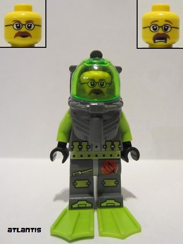 lego 2011 mini figurine atl023 Atlantis Diver 7 Brains - With Yellow Flippers and Trans-Yellow Visor