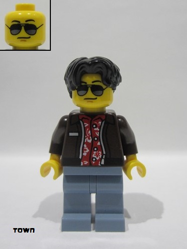 lego 2025 mini figurine cty1918 Air Ambulance Pilot Male, Light Aqua Shirt with Tie, Dark Blue Legs, Dark Brown Hair, Sunglasses