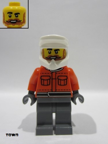lego 2025 mini figurine cty1936 Construction Worker Male, Reddish Orange Safety Jacket with Reflective Stripes, Dark Bluish Gray Legs, Red Construction Helmet, Beard