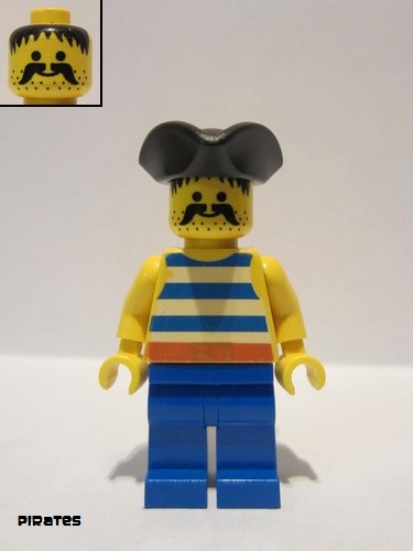 lego 1994 mini figurine pi017 Pirate Blue / White Stripes Shirt, Black Legs, Black Pirate Triangle Hat